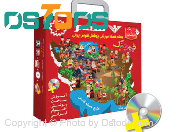 به همراه دی وی دی آموزش ساخت پوشش اقوام ایرانی، بروشور و فلش کارت های معرفی اقوام ایرانی، ابزار کار، فیکساتور و قلمو