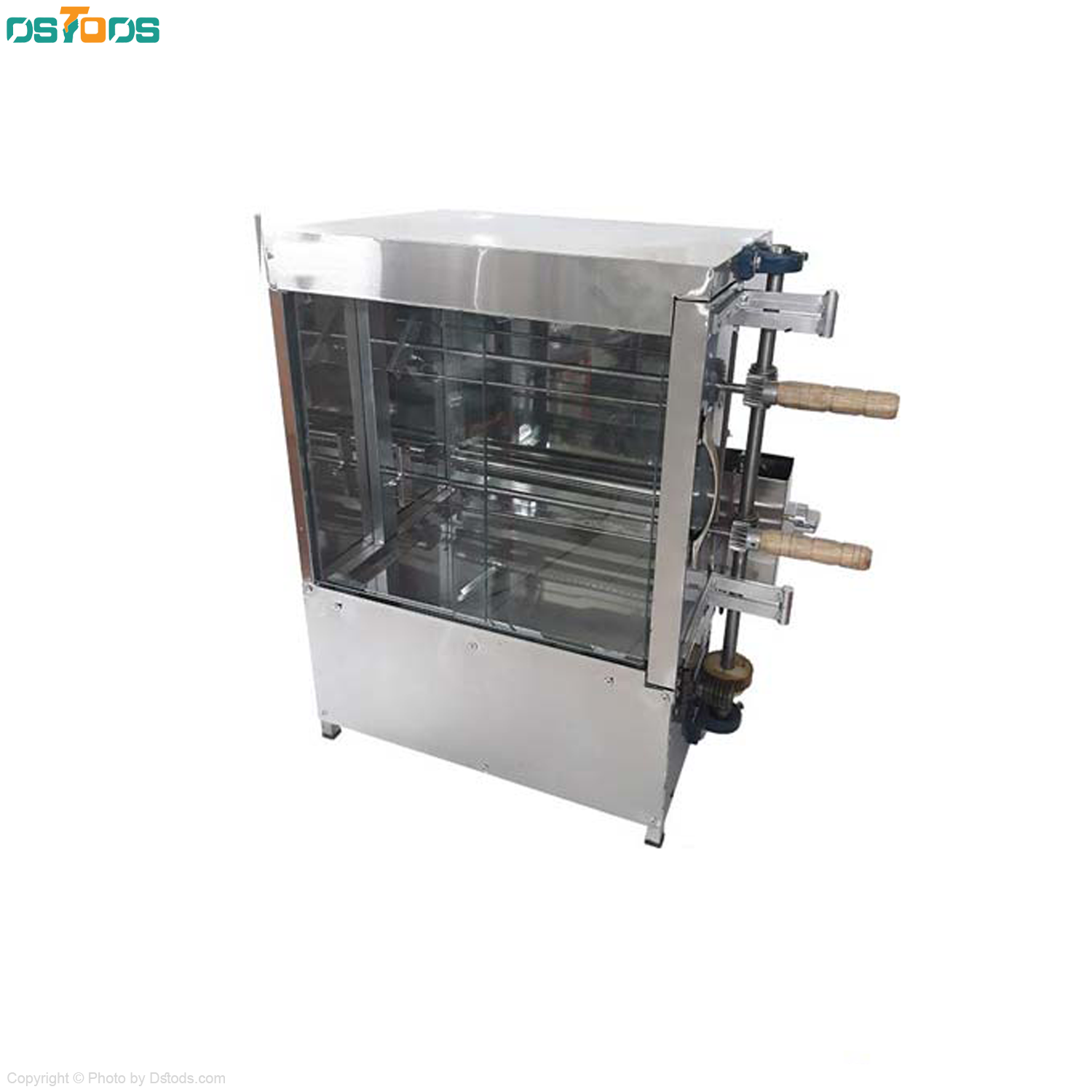 دستگاه مرغ بریان، از تجهیزات مناسب و ضروری است برای استفاده در رستوران ها و فست فود ها و آشپزخانه های صنعتی جهت پخت انواع مرغ، بوقلمون، کتف و بال، بلدرچین و یا هرچیزی که قصد بریان کردن آن را داریم. بدنه دستگاه از جنس استنلس استیل با ضخامت بالا و اسکلت آن از پروفیل آهن است. از مزایای ویژه دستگاه جوجه گردان میتوان به مجهز بودن آن به چهار جرخ جهت جابجایی آسان و شیشه های سکوریت نشکن اشاره کرد. دستگاه مرغ بریان دارای سینی برای ریختن روغن هنگام بریان کردن مرغ و همچنین این محصول دارای سیخ هایی با کیفیت عالی و آبکاری شده و پرداخت شده می باشد. دستگاه فر مرغ بریان (جوجه گردان) از دسته تجهیزات پخت و فست فود مجهز به موتور گیربکسی قوی برای چرخاندن سیخ ها می باشد. و هر محور چرخش سیخ بر روی یک موتورگیربکس مجزا کوبل شده که علاوه بر ایجاد کمترین صدای ممکن دیگر نگرانی بابت اصطحلاک چرخ دنده ها نخواهید داشت. از دیگر ویژگیهای این دستگاه مجهز بودن آن به شیر های گاز استاندارد و قابلیت استفاده از گاز شهر یا گاز مایع می باشد. دستگاه فر مرغ بریان یا جوجه گردان در مدل های مختلف 2 ، 3 ، 4 ، 6 و 12 سیخ و طبق نیاز مشتریان عزیز طراحی و تولید می گردد. دستگاه جوجه گردان در انواع مختلفی طراحی و تولید می شود که با توجه به تعداد سیخ های موجود در دستگاه قیمت جوجه گردان تغییر می کند. ظرفیت هر کدام از سیخ های جوجه گردون ها معمولا تعداد 4 یا 5 مرغ در هر ردیف است که با توجه به ابعاد دستگاه تعداد سیخ های جوجه گردان تهیه و عرضه می شود.در محفظه ی زیرین دستگاه فر جوجه گردان یک سینی از جنس استیل به منظور جلو گیری از ریزش روغن چکه شده از مرغ در حال پخت بر روی زمین و نگه داری روغن مازاد تعبیه شده که منجر به رعایت بهداشت و تمیزی محیط رستوران می شود .