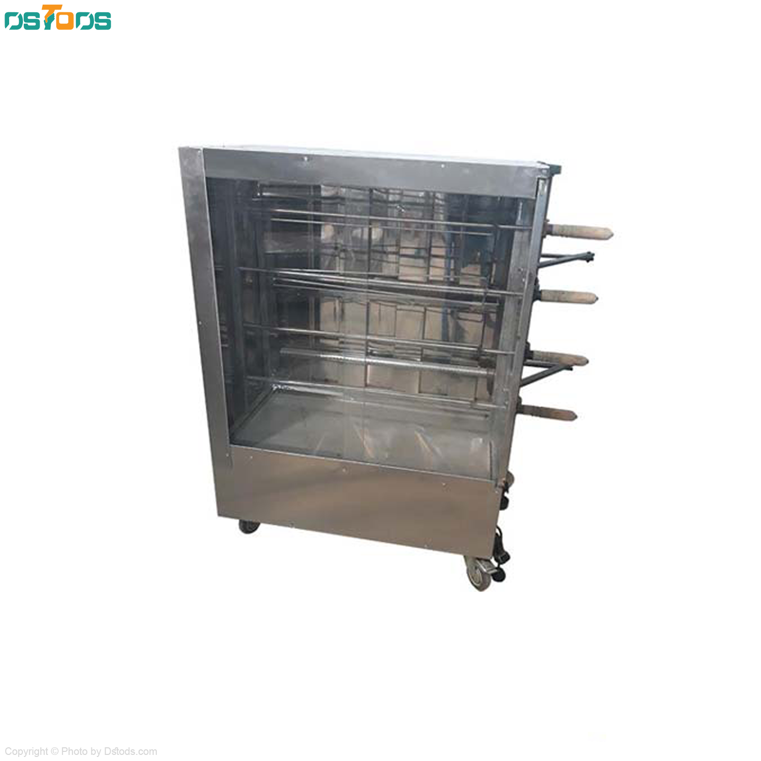 دستگاه مرغ بریان، از تجهیزات مناسب و ضروری است برای استفاده در رستوران ها و فست فود ها و آشپزخانه های صنعتی جهت پخت انواع مرغ، بوقلمون، کتف و بال، بلدرچین و یا هرچیزی که قصد بریان کردن آن را داریم. بدنه دستگاه از جنس استنلس استیل با ضخامت بالا و اسکلت آن از پروفیل آهن است. از مزایای ویژه دستگاه جوجه گردان میتوان به مجهز بودن آن به چهار جرخ جهت جابجایی آسان و شیشه های سکوریت نشکن اشاره کرد. دستگاه مرغ بریان دارای سینی برای ریختن روغن هنگام بریان کردن مرغ و همچنین این محصول دارای سیخ هایی با کیفیت عالی و آبکاری شده و پرداخت شده می باشد. دستگاه فر مرغ بریان (جوجه گردان) از دسته تجهیزات پخت و فست فود مجهز به موتور گیربکسی قوی برای چرخاندن سیخ ها می باشد. و هر محور چرخش سیخ بر روی یک موتورگیربکس مجزا کوبل شده که علاوه بر ایجاد کمترین صدای ممکن دیگر نگرانی بابت اصطحلاک چرخ دنده ها نخواهید داشت. از دیگر ویژگیهای این دستگاه مجهز بودن آن به شیر های گاز استاندارد و قابلیت استفاده از گاز شهر یا گاز مایع می باشد. دستگاه فر مرغ بریان یا جوجه گردان در مدل های مختلف 2 ، 3 ، 4 ، 6 و 12 سیخ و طبق نیاز مشتریان عزیز طراحی و تولید می گردد. دستگاه جوجه گردان در انواع مختلفی طراحی و تولید می شود که با توجه به تعداد سیخ های موجود در دستگاه قیمت جوجه گردان تغییر می کند. ظرفیت هر کدام از سیخ های جوجه گردون ها معمولا تعداد 4 یا 5 مرغ در هر ردیف است که با توجه به ابعاد دستگاه تعداد سیخ های جوجه گردان تهیه و عرضه می شود.در محفظه ی زیرین دستگاه فر جوجه گردان یک سینی از جنس استیل به منظور جلو گیری از ریزش روغن چکه شده از مرغ در حال پخت بر روی زمین و نگه داری روغن مازاد تعبیه شده که منجر به رعایت بهداشت و تمیزی محیط رستوران می شود .