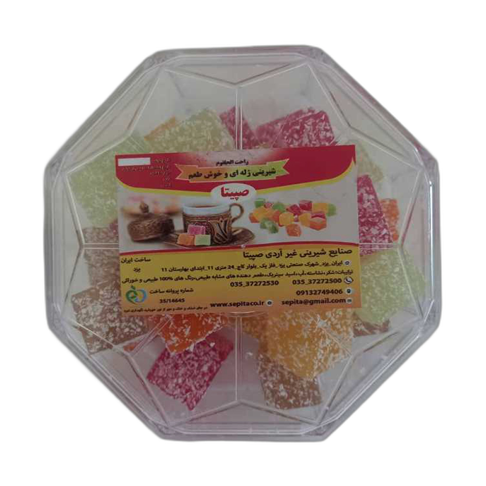 صپیتا نیز به عنوان یکی از فروشندگان این نوع شیرینی است که در تلاش است تا بهترین ، خوشمزه ترین ، با کیفیت ترین و تازه ترین شیرینی ژله ای را در اختیار شما قرار دهد که قابلیت تولید با مغز گردو و پسته و نیز در با طعم های مختلف را دارد.بسته بندی ها به دو صورت قلبی و هشت ضلهی موجود می باشد
