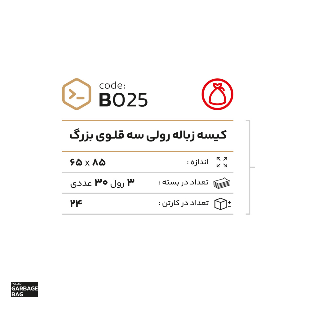 کیسه زباله رولی سه قلوی بزرگ 85*65