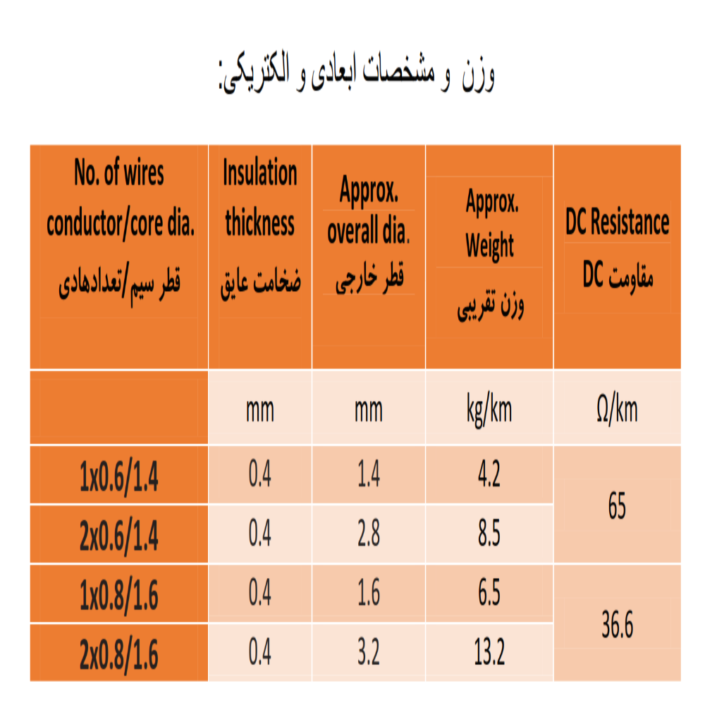 عایق: PVC نوع YI1 مطابق استاندارد VDE با استحکام الکتریکی مناسب