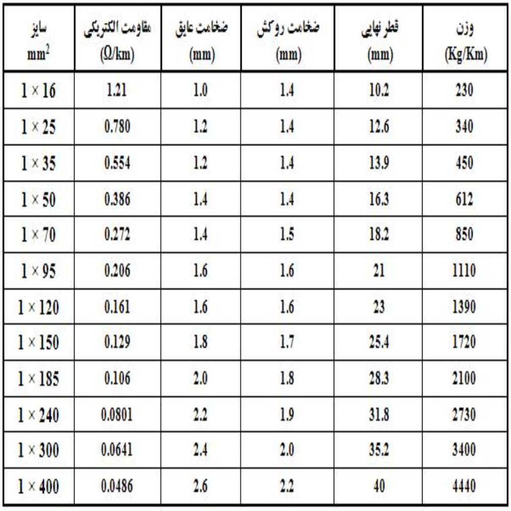 سطح مقطع: متنوع از 1 میلیمتر مربع تا مقاطع بزرگتر برای کاربردهای خاص