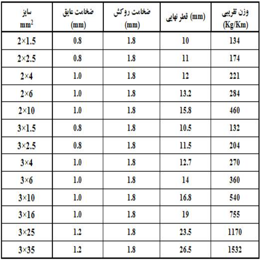 کابل افشان چند رشته با عایق و روکش PVC و سطح ولتاژ 0.6/1 KV ستاره