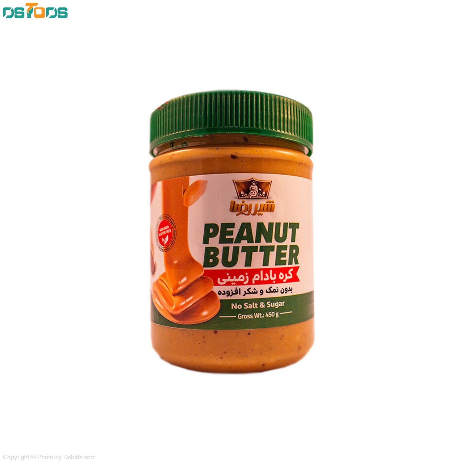 کره بادام زمینی بدون نمک و شکر افزوده شیررضا - 450 گرم