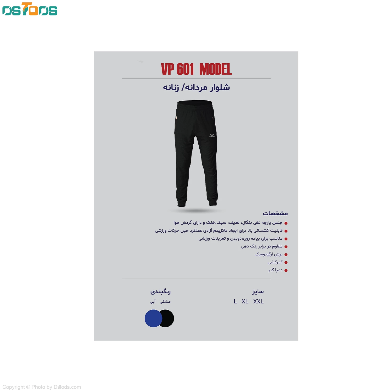 شلوار ورزشی مدل VP601 دارای دو رنگ آبی و مشکی از جنس نخی بنگال تولید شده است . این شلواربا ویژگی کشسانی بالا برای ایجاد ماکزیمم آزادی در حین انجام حرکات ورزشی مناسب می باشد.