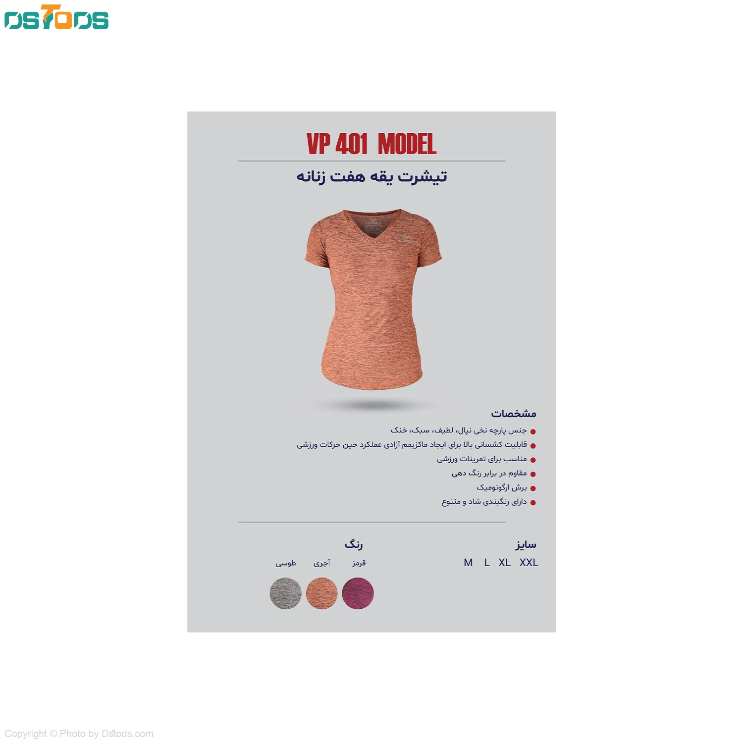 تیشرت زنانه یقه هفت مدل VP401 از جنس پارچه نخی نپال ، سبک ، لطیف و خنک ، دارای برش ارگونومیک و همچنین قابلیت کشسانی بالا مناسب برای ورزش می باشد .