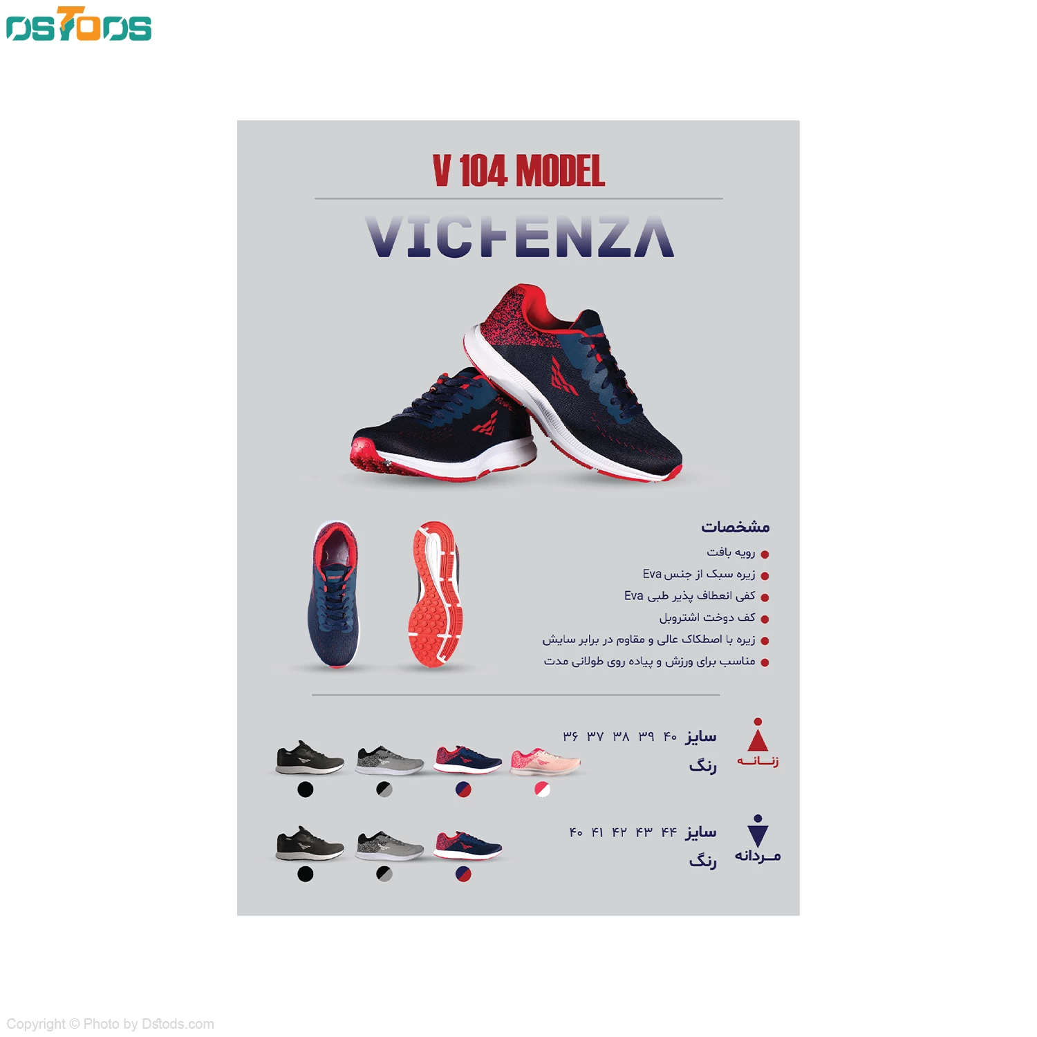 کفش ورزشی ویچنزا مدل V104 دارای رویه بافت و زیره سبک از جنس EVA و همچنین کفی انعطاف پذیر طبی EVA می باشد . این کفش دارای کف دوخت اشتروبل است که سبب استحکام بالا و مقاوم در برابر آب می شود.