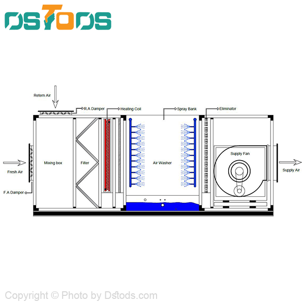 ویژگی های هواساز ایرواشر: امکان ساخت ایرواشر در دو نوع یک یا دو بانکه در کلاسهای۴ تا ۸ و با قابلیت نصب الکتروپمپ در داخل و خارج دستگاه مجهز به فن از نوع سانتریفیوژ Forward curved و یاBackward curvedطرح شرکتNicotraایتالیا امکان تولید با انواع کویل گرمایشی آبگرم یا بخار با لوله مسی و پره آلومینومی(مسی) و یا المنت الکتریکی بر اساس سفارش امکان حفاظت کویل ها در شرایط محیطی و جغرافیایی خاص با پوشش مواد ضد خوردگی مجهز به دمپرهای ورودی هوا از جنس آلومینیوم با پره های آیر فویل با قابلیت نصب به موتور دمپر قابلیت نصب انواع سیستم های رطوبت زنی مانند نازل سوزنی، بخار و یا مولد تولید بخار با کنترل میکروپروسسوری قابلیت نصب انواع فیلترهای آلومینیومی و فیلتر های مخصوص نظیر پیلتد،کیسه ای،شیمیایی،هپا امکان تعویه تجهیزات جانبی از قبیل دریچه بازدید،صداگیر ،تابلو برق و شیر سرراه موتوری و ترموستات استراکچر از پروفیل آلومینیوم با اتصالات پلی امید و بدنه دستگاه از جنس ورق گالوانیزه مرغوب و رنگ آمیزی شده به روش الکترو استاتیک با رنگ پودر کوره ای