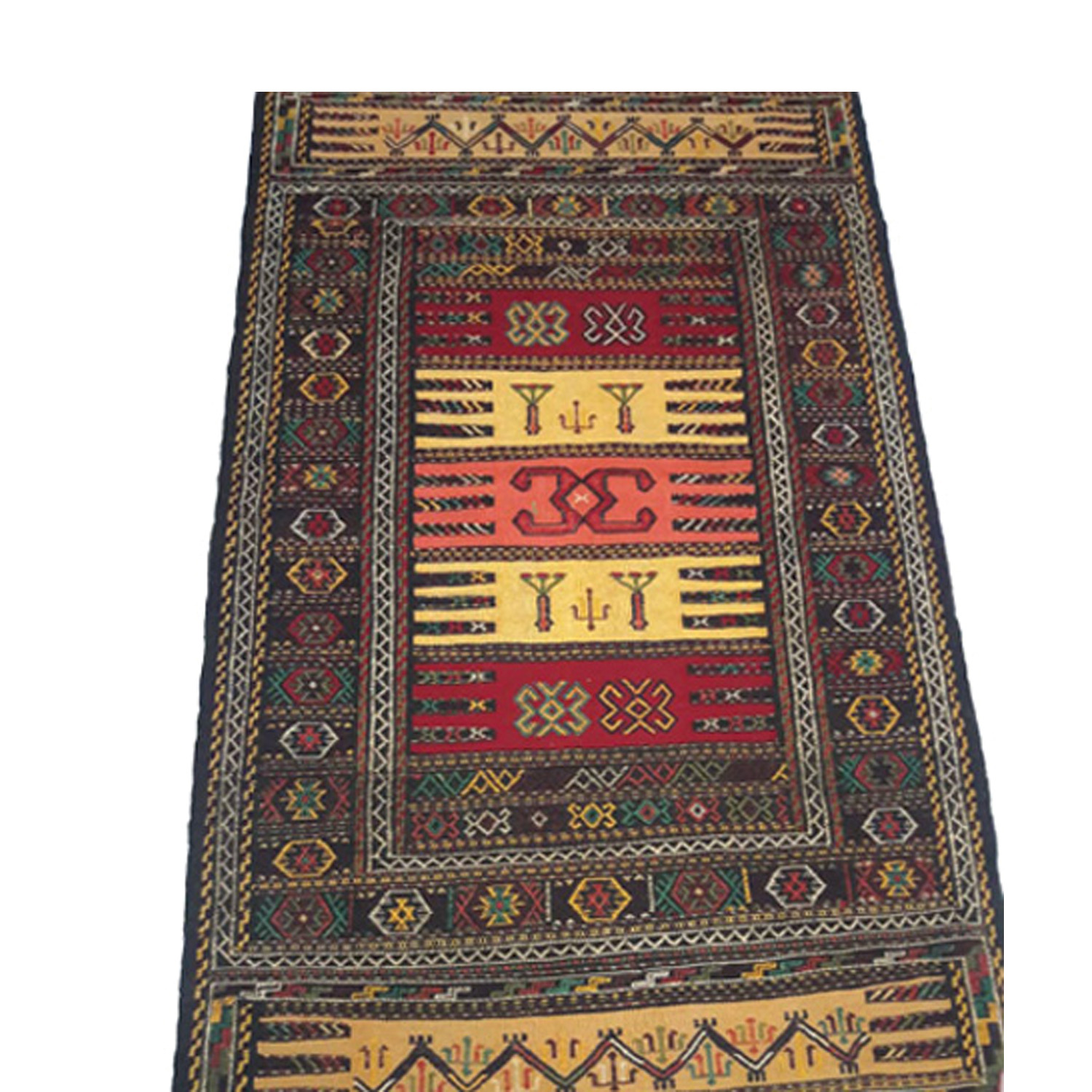 گلیم سفره کردی ریز بافت خوش نقش طلایی شور شده زیبا ابعاد 100*190