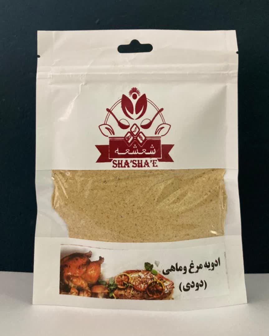 ادویه مرغ و ماهی شعشعه یک ادویه کاملا انحصاری به لحاظ فرمولاسیون میباشد .فرمول این ادویه توسط خانم آزاده احمدی مدیر عامل شرکت ثبت ایده گردیده است.هنگام استفاده از این ادویه فقط از چاشنی نمک استفاده کنید و از این مزه استثنایی لذت ببرید. مواد تشکیل دهنده در این ادویه به صورت قلم سرت شده بوده است که در داخل دستگاه آسیاب و بلندر مخلوط گردیده در بسته زیپ کیپ با این ادویه خوشمزه شعشعه میتوانید یک مرغ ترکی عالی تهیه نمایید.