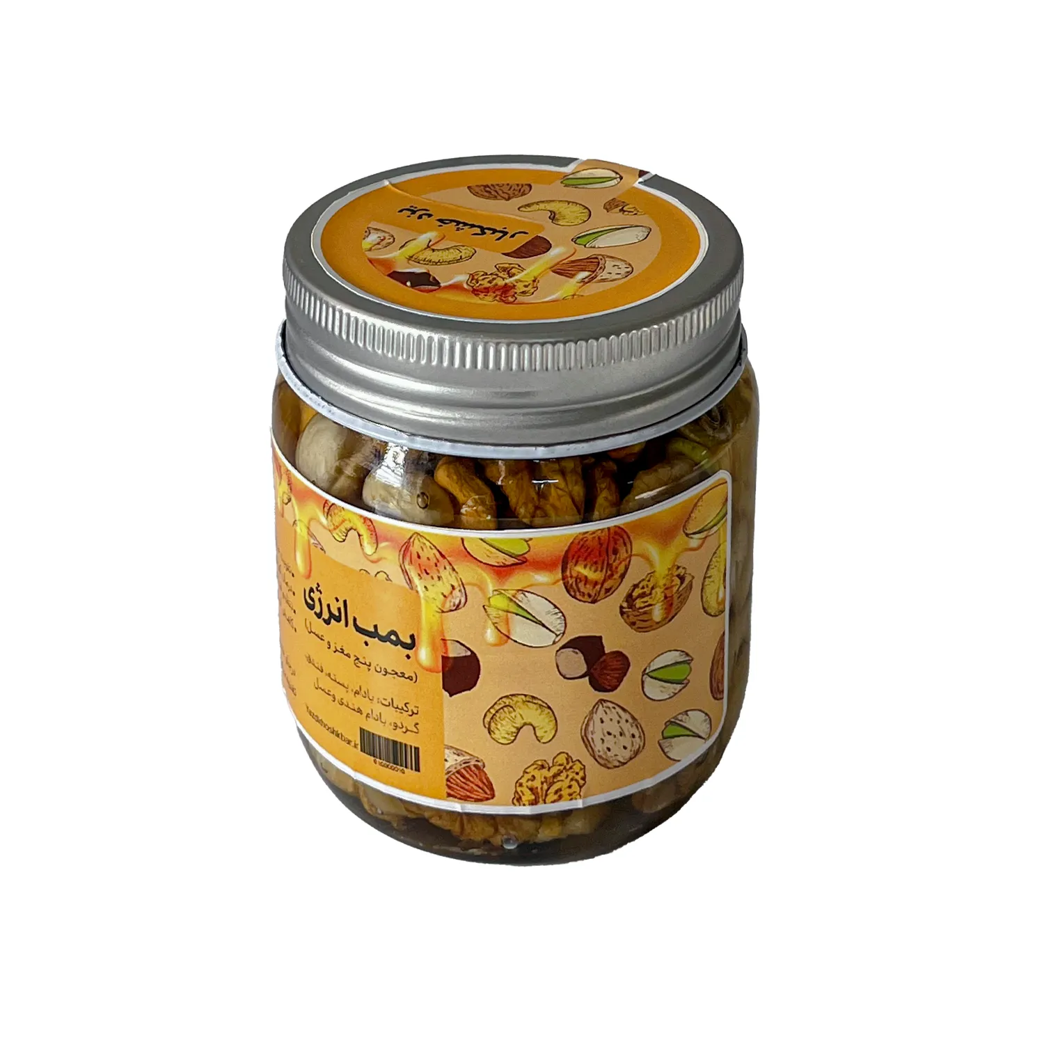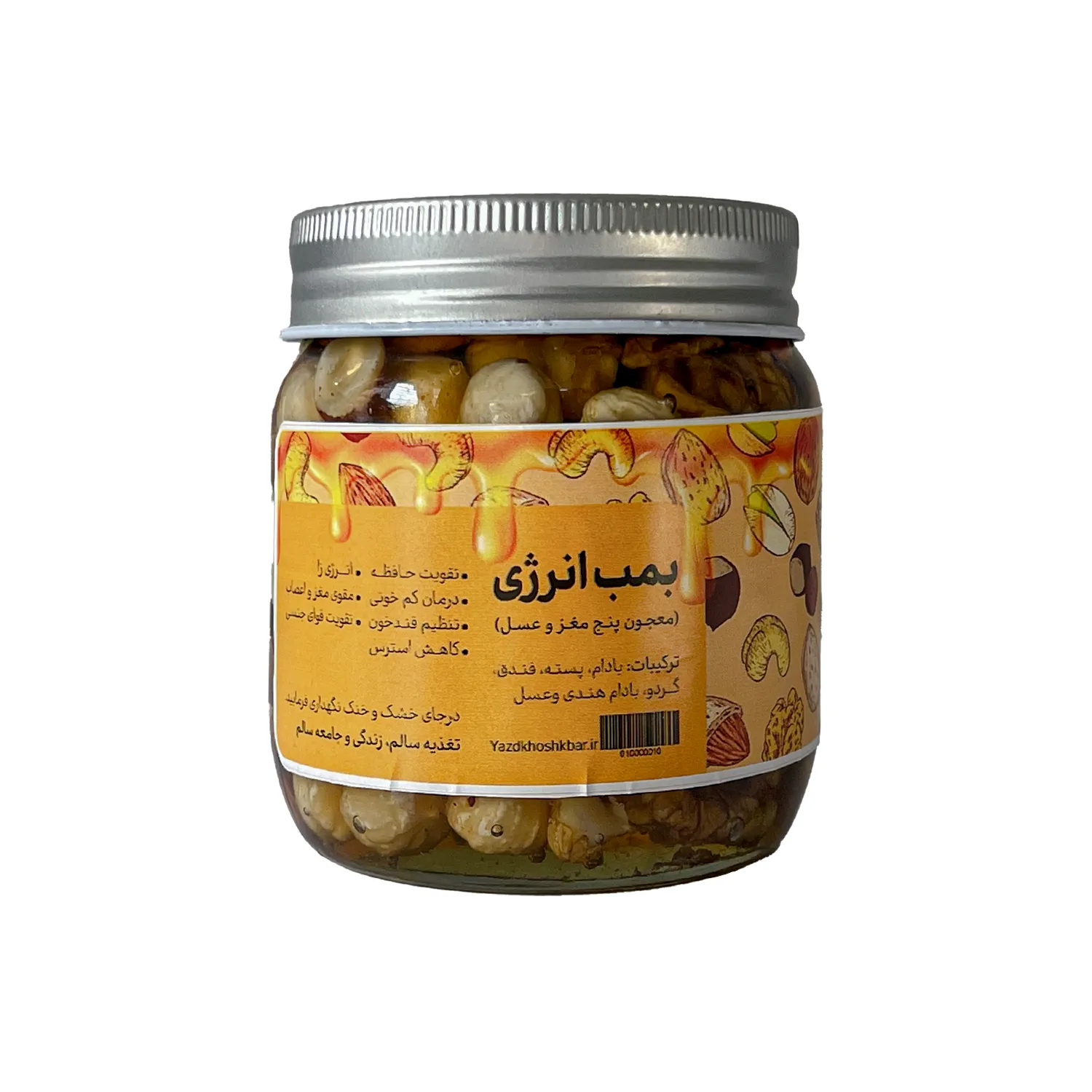 معجون 5 مغز وعسل، تهیه شده از عسل طبیعی و تازه ، مغز بادام، پسته، گردو و بادام هندی می باشد. این معجون مقوی و خوشمزه با خواص فراوانی است که برای تمام سنین مناسب می باشد.