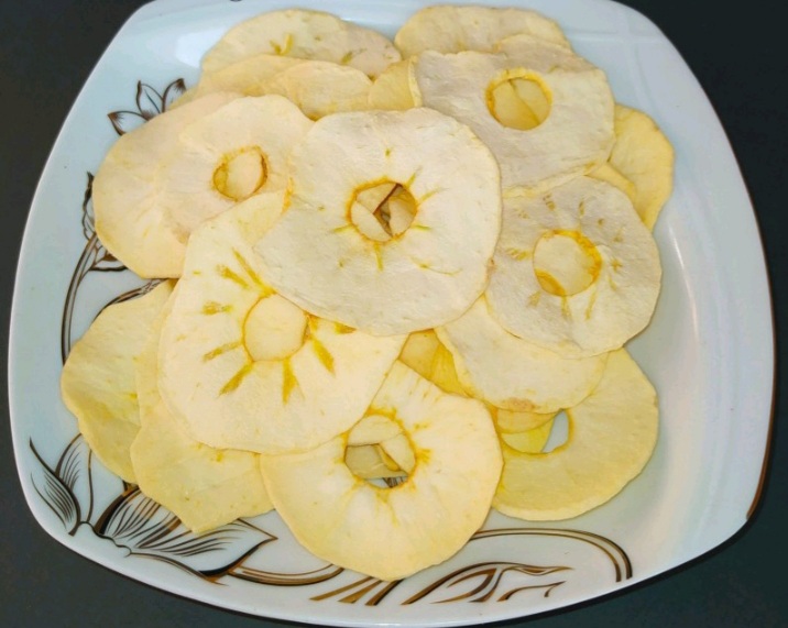 سیب خشک دارای خواص بسیاری برای بدن است می باشد. این خوراکی خوشمزه و پر خاصیت دارای ویتامین های A و C می باشد که برای جلوگیری از بیماری های پوستی، شادابی پوست، تنظیم و کاهش فشار خون مفید است.