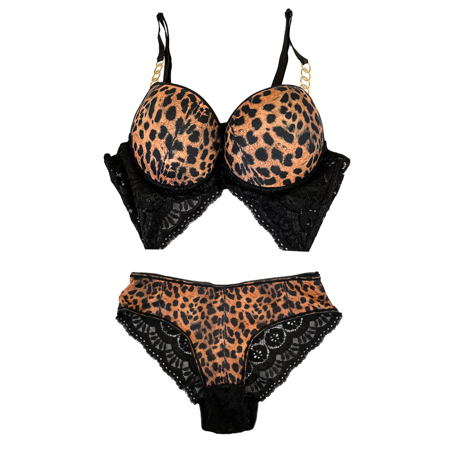 ست شورت و سوتین اسفنجی پلنگی جک دار با طرح توری، انتخابی شیک و جذاب برای بانوان می باشد. جنس اسفنجی این ست بسیار نرم و راحت است.