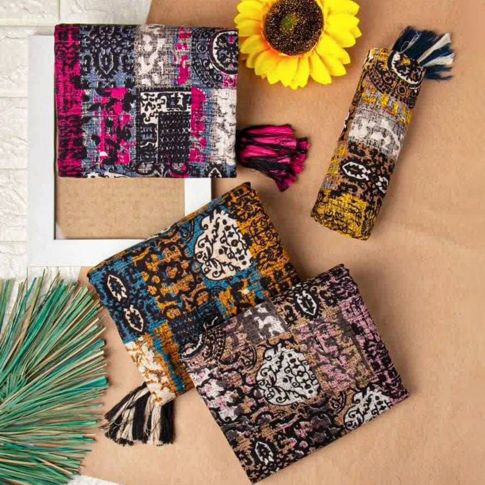 شال طرحدار نخی با کیفیت و دوام بالا، بافتی نرم و لطیف دارد که برای استفاده طولانی مدت مناسب است.این محصول در انواع طرح های رنگارنگ و زیبا در سایت دست تو دست قابل سفارش می باشد.