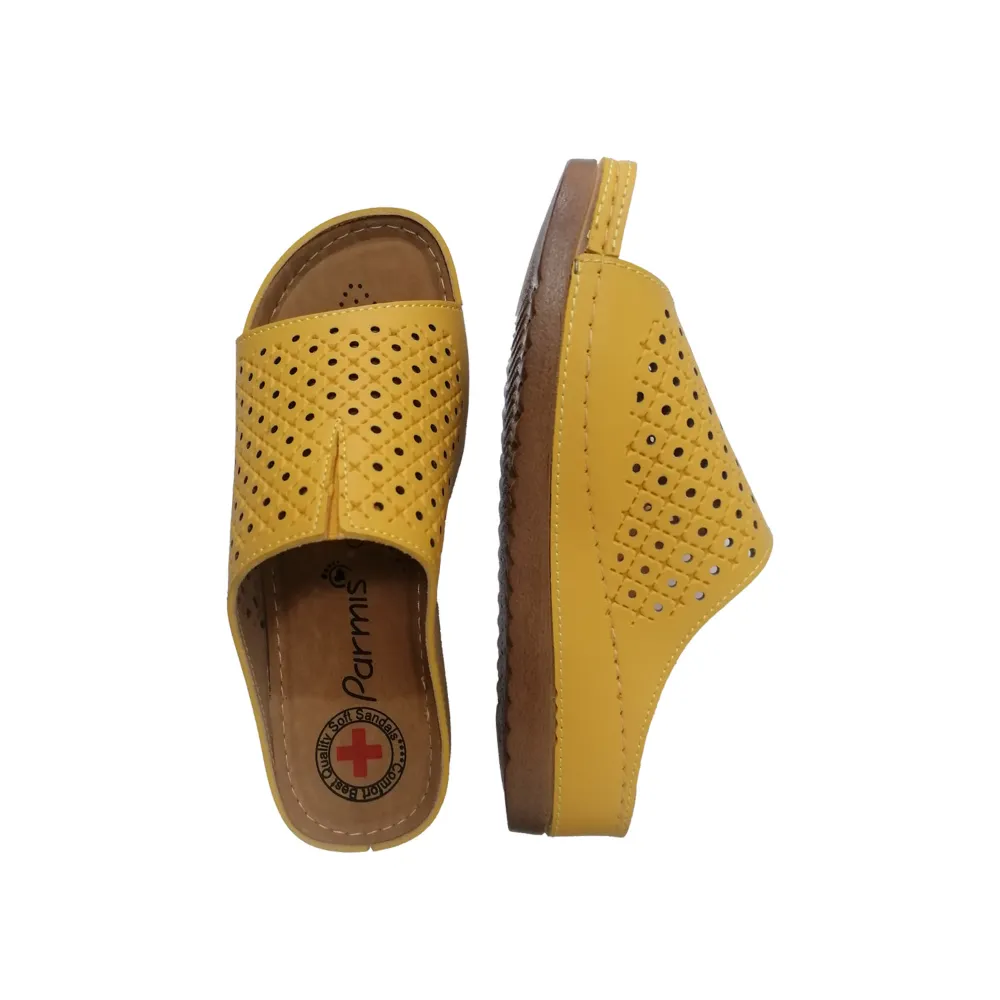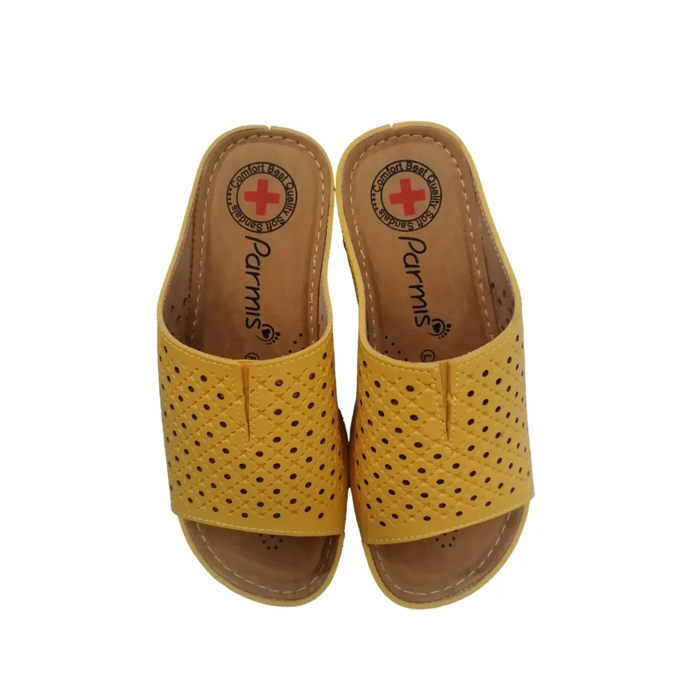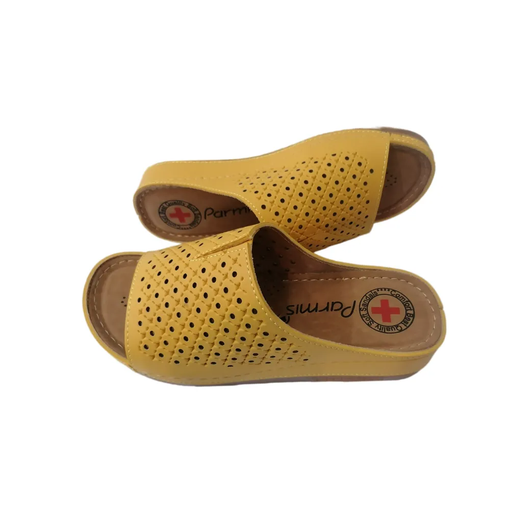 دمپایی زنانه مدل پارمیس دارای کفی و زیره طبی مناسب برای ایستادن های طولانی، استفاده در محیط کار و مشاغلی با رفت و آمدهای زیاد و طولانی می باشد. این دمپایی شیک با استفاده از مواد اولیه با کیفیت و فناوری های پیشرفته، سلامت پای شما را تضمین می کند.