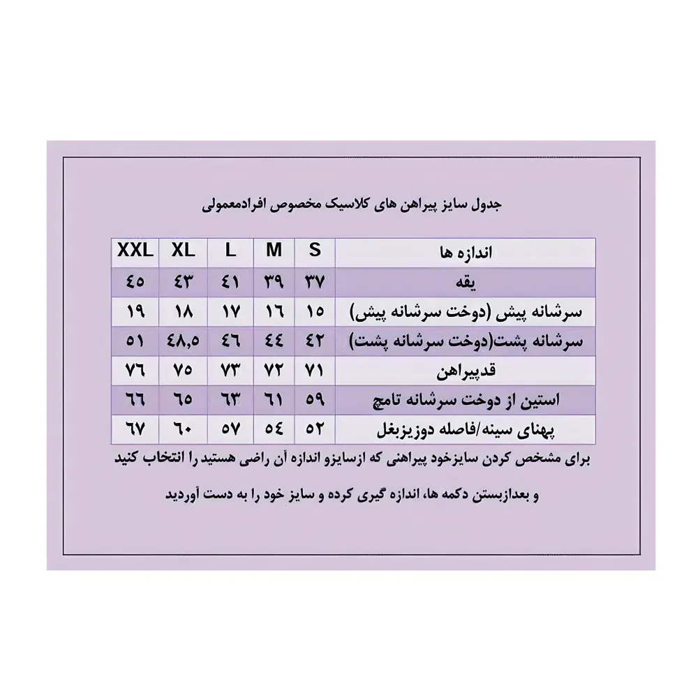 جهت شخصی دوزی محصول با ما در ارتباط باشید. درخواست های شما در سریع ترین زمان مورد بررسی قرار گرفته و اقدامات لازم جهت دوخت پیراهن آستین بلند مردانه با جزئیات و سایز مورد نظر شما انجام می شود.