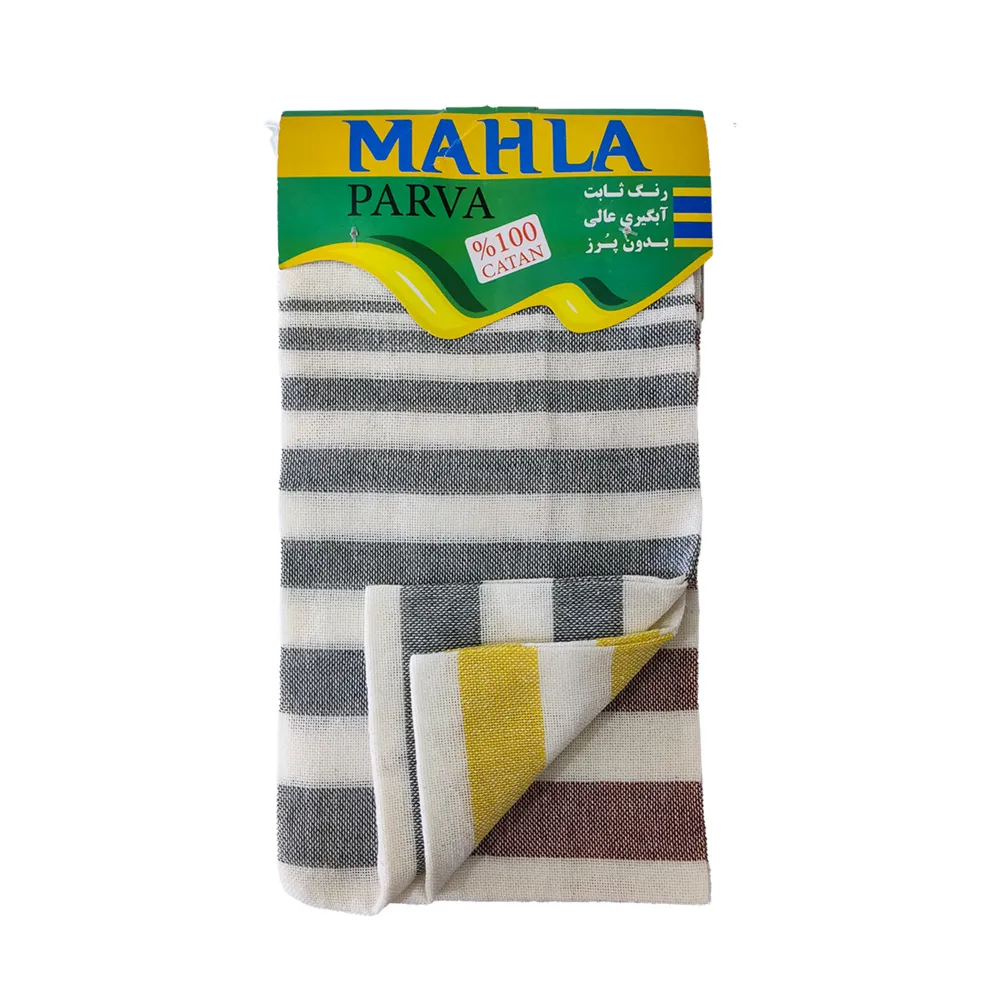 دستمال آشپزخانه طرح پرچمی مهلا تولید شده از جنس نخ پلی استر پنبه که در ابعاد 40*60 سانتی متر می باشد. این دستمال مناسب استفاده در آشپزخانه برای خشک کردن ظروف و دست ها، تمیز کردن سطوح مختلف آشپزخانه، آبگیری میوه یا سبزیجات و... می باشد. این دستمال قابلیت شتسشوی بالا، بدون افت کیفیت دارد.