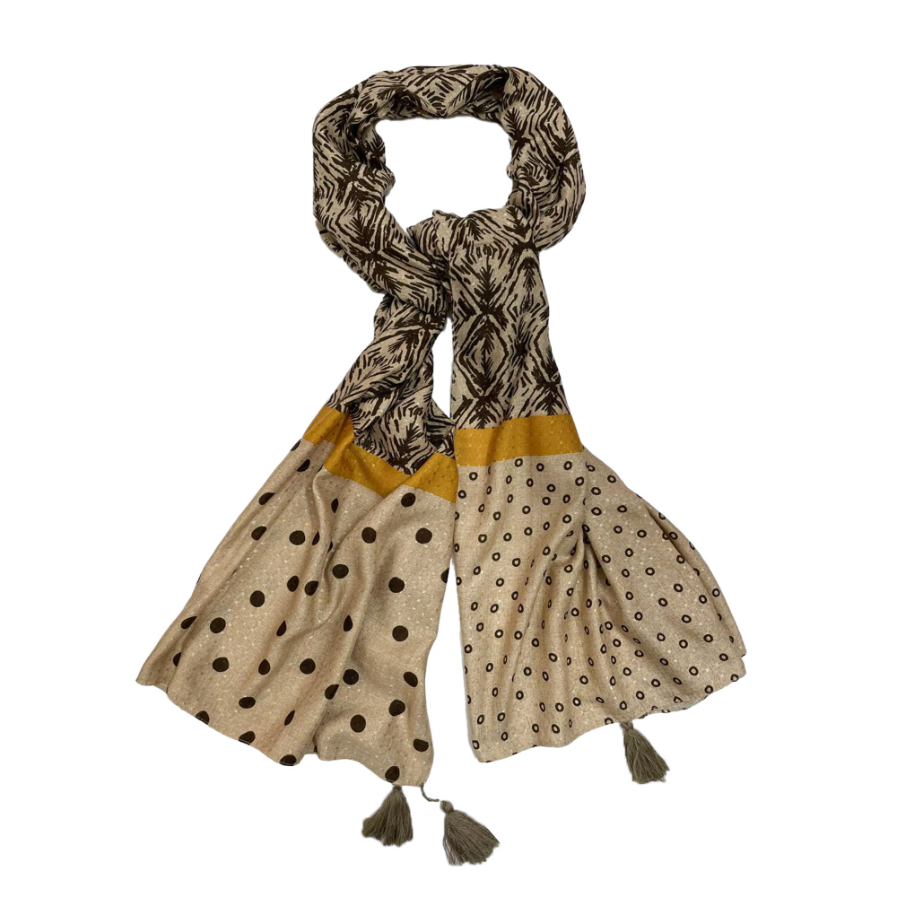 شال طرحدار کرم قهوه ای از جدید ترین و شیک ترین مدل های شال امسال است که محبوبیت بسیاری دارد. این شال از جنس مرغوب و با کیفیت تهیه شده که جنس خنک و سبکی دارد و انتخابی ایده آل برای استفاده در فصول گرم سال به ویژه تابستان است.