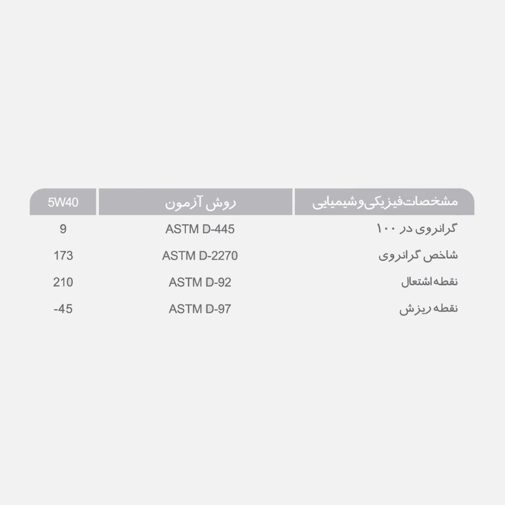 مزایا: جلوگیری از تشکیل کف پایدار در موتور خودرو مقاومت عالی در برابر اکسیداسیون و خوردگی و زنگ زدگی دوام عالی در مدت کارکرد طولانی محافظت از موتور خودرو در برابر ترافیک های سنگین موثر بر کاهش مصرف سوخت خودرو محافظت در برابر تشکیل لجن و رسوب در موتور خودرو