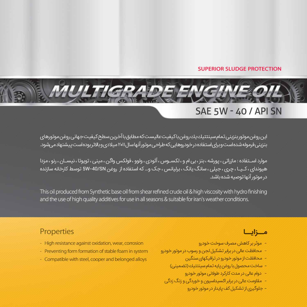 مزایا: جلوگیری از تشکیل کف پایدار در موتور مقاومت بسیار عالی در برابر زنگ زدگی، خوردگی و اکسیداسیون دوام بالا در مدت کارکرد طولانی موتور خودرو محافظت از موتور خودرو در ترافیک های سنگین محافظت در برابر تشکیل لجن و رسوب در موتور خودرو کاهش مصرف سوخت خودرو