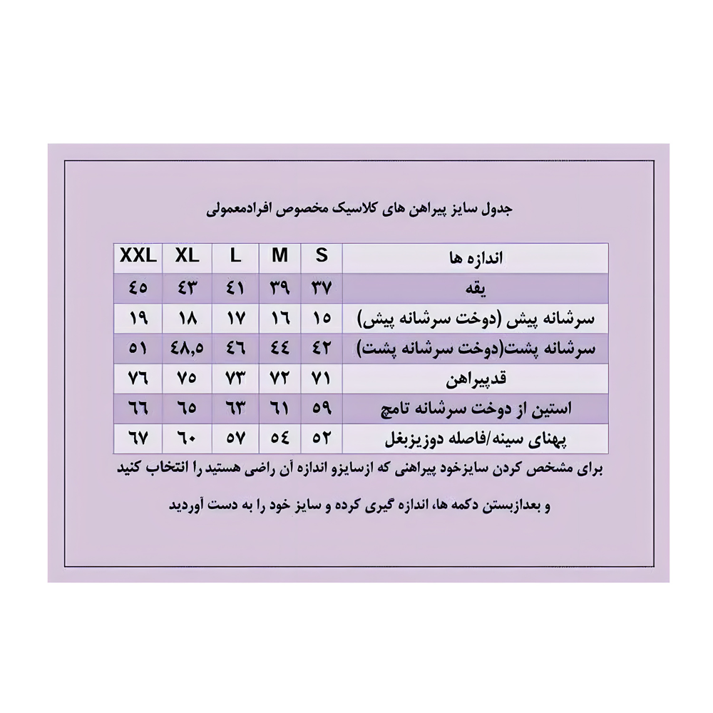 جهت شخصی دوزی این محصول، با جزئیات و سایز مورد نظرتان با ما در ارتباط باشید.