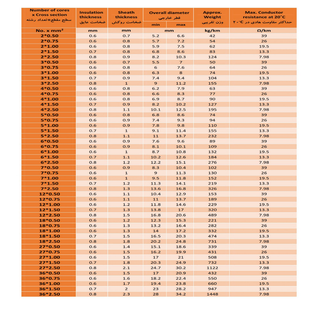 استاندارد مرجع: IEC 60227, IEC 60228, ISIRI 607-7