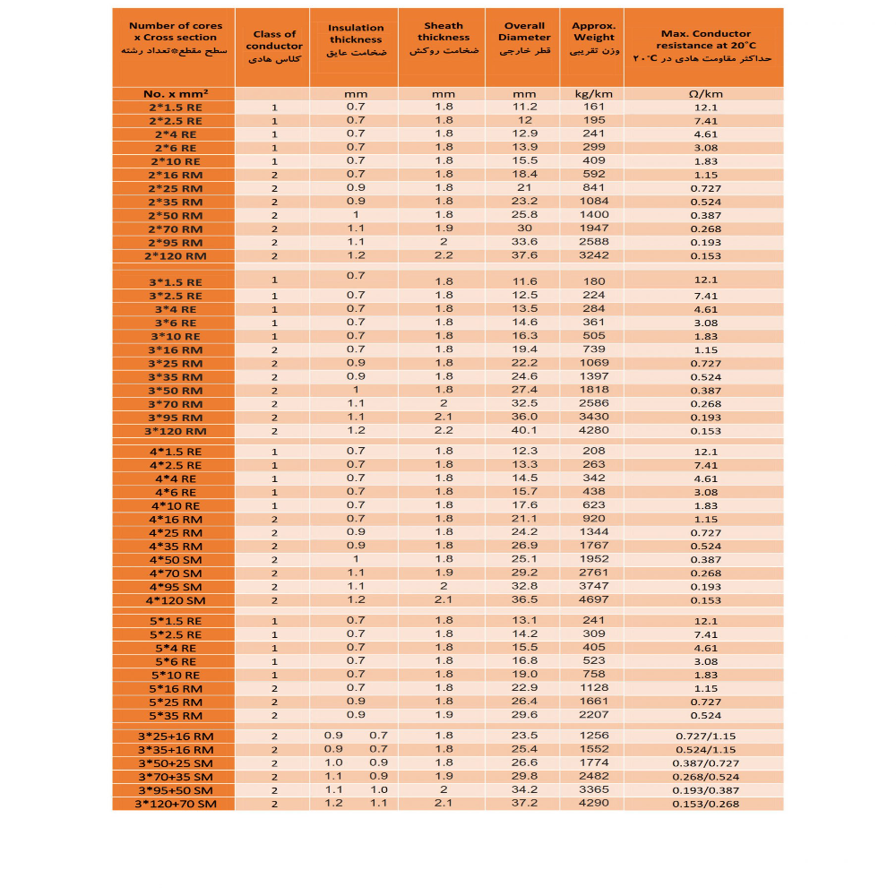 روکش خارجی: PVC90/ST2 با مقاومت در برابر عوامل محیطی و مکانیکی