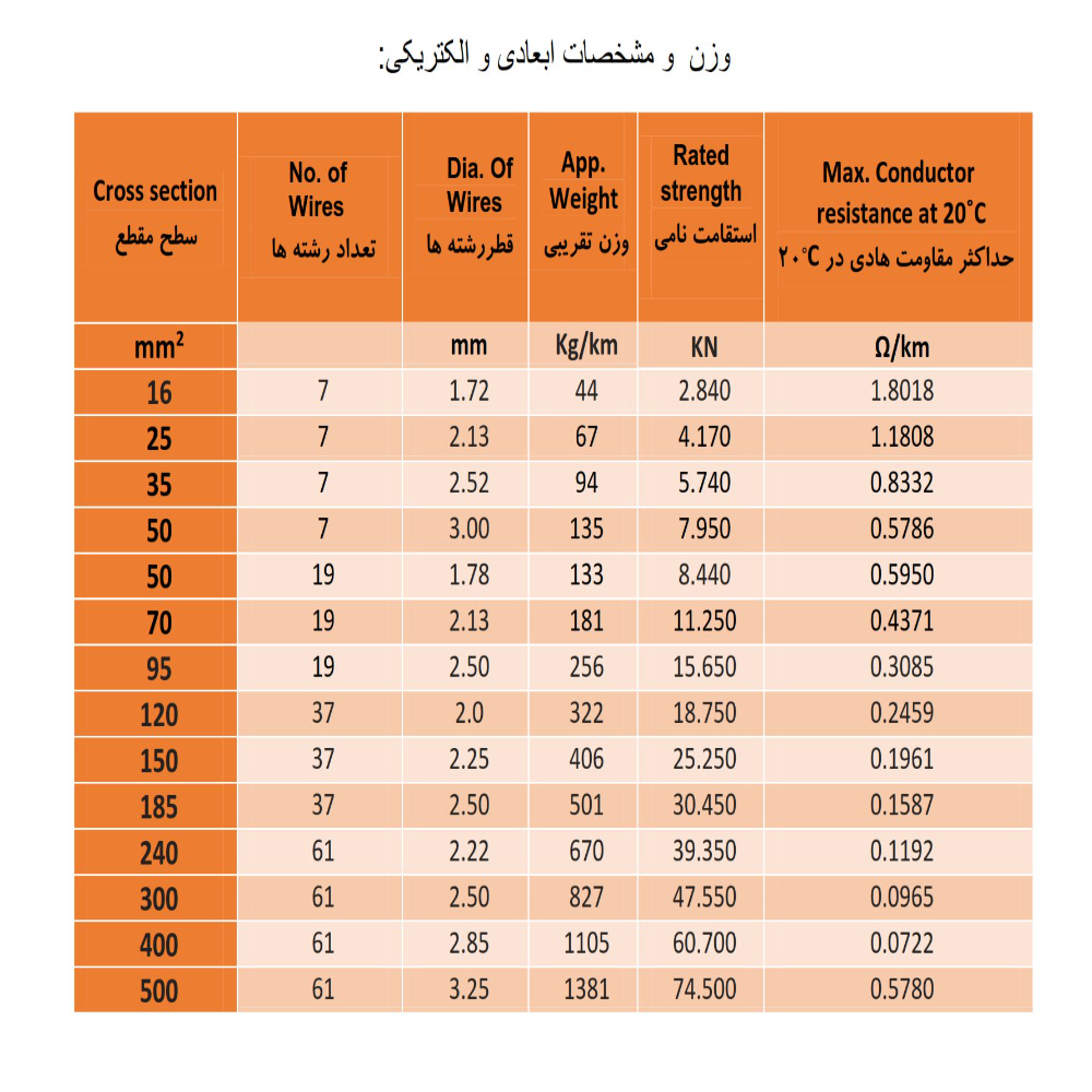 تعداد رشتهها: چندین مفتول آلومینیومی تابیده شده به هم